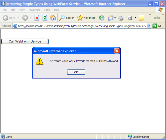 This tutorial demonstrates the basic function of WebFlyPostBackManager to retrieve simple-type results from a WebForm (aspx) page.