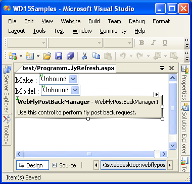 - Drag WebFlyPostBackManager from Toolbox into a WebForm page.