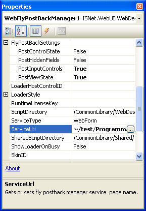 Properties Values ServiceType WebForm ServiceUrl The URL path of the page (in this case, the path is ~/test/ProgrammaticallyRefresh.aspx) PostInputControls True PostViewState True