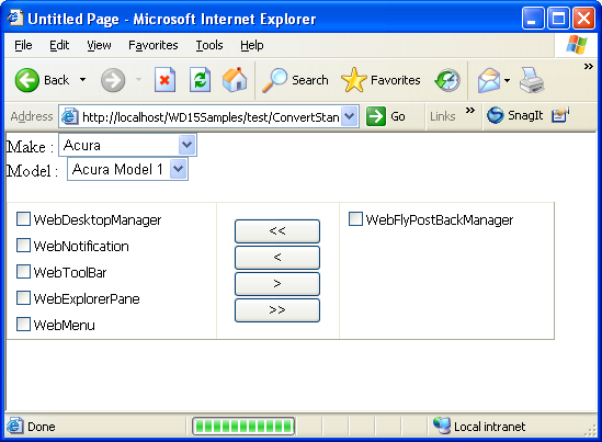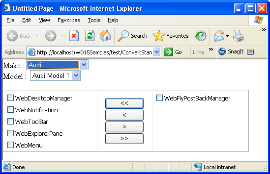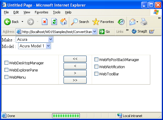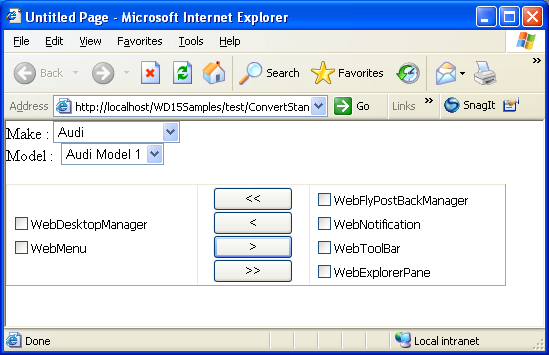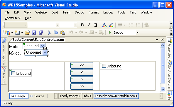 - Run the page. Selecting a value from ddlMake to populate data in ddlModel will cause full page postback.