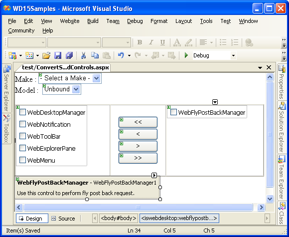 - Drag WebFlyPostBackManager from Toolbox into a WebForm page.