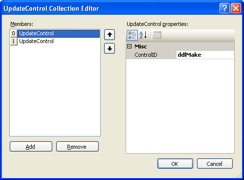 - Add selected controls that will be set to use callback. In this tutorial, add ddlMake and ddlModel.
