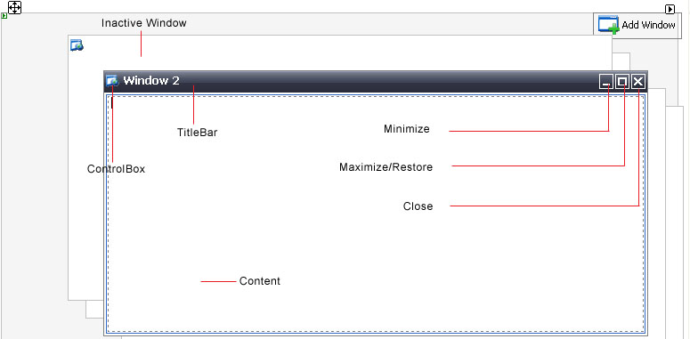 WebDesktopManager comes along with fully customizable visual styles for the Window's elements. The styles are defined in strong object model which can be easily applied through Designer or code-behind without the need to use css syntax.