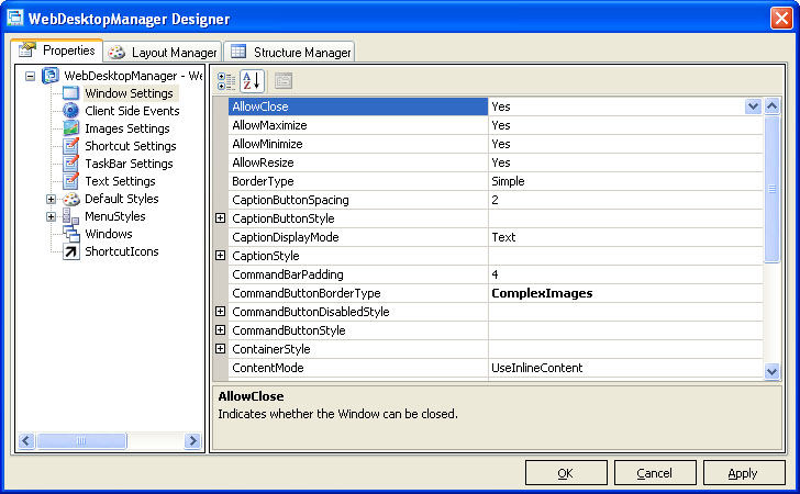 | AllowClose | Specifies whether Window can be closed. |