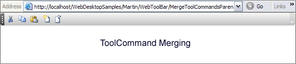 WebToolBar introduces Merging feature which allows you to Merge ToolBar from your parent page with child page. There are 2 types of Merging, which are ToolBar Merging and ToolCommand Merging. ToolBar Merging is used to combine Parent ToolBar with Child ToolBar from different pages. Hence, it will merge the whole ToolBars. ToolCommand Merging is slightly different compared to ToolBar Merging. It does not merge the whole ToolBar, but it does merge the ToolCommand instead. Hence, the Child's ToolCommand will be merged to Parent's ToolCommand using the container.