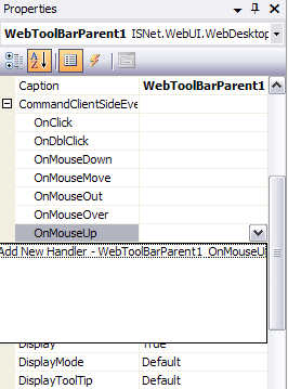 The OnMouseUp event is the best event handler where you can put your codes to perform some actions for the ToolBar Button such as open new window, save documents, exit from application, etc. For instance, you may want to display a WebDialogBox, you can use OnMouseUp Event to perform this action.