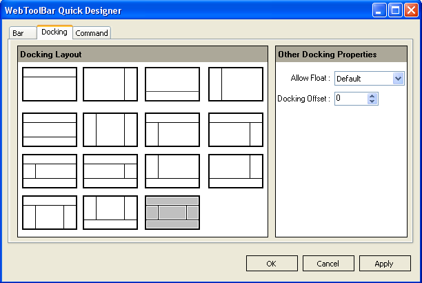 Docking section focus on the Docking Layout configuration. This docking layout informs the WebToolBar the position to where it can be docked to.