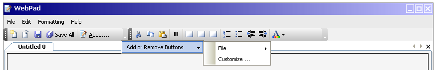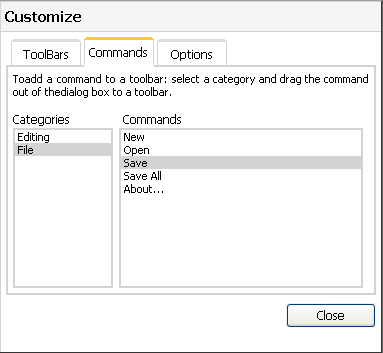 Like the common Desktop's ToolBar, WebToolBar also implemented a Customization DialogBox. Customization DialogBox is a feature which allows the user to configure the WebToolBar(s) settings at run-time. One of benefit having this feature is the customized WebToolBar, where the user can modify it to their own requirement, which later on the structure can be saved to xml.