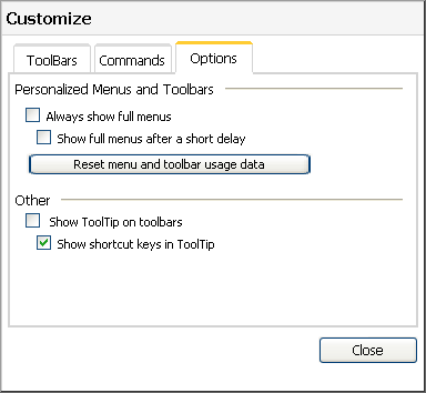 The other functionalities of this Customization DialogBox, is to customize all WebToolBars which reside in the same PlaceHolderManager. Things that can be customized are categorized as follows:
