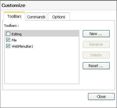 By enabling Customization DialogBox, the WebToolBar can be configured at runtime. The most direct functionality is to add/remove command types of the specific WebToolBar where the command types can be customized to be shown or hidden.