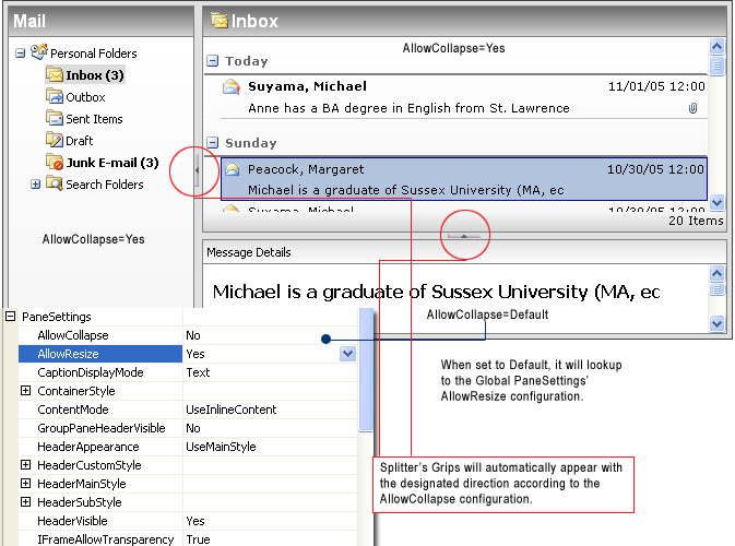 The default value in Global level is False. The best recommendation for enabling this feature is by configuring the AllowCollapse in Individual Pane level so that you can have more control over which direction should the Pane collapsed to. To better understand the usage of AllowCollapse, please see following illustration.
