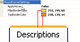 RoundCornerSettings facilitates you to configure 2 colors for RoundCorner tab header, which represent FillerBorderColor and TopBorderColor of the active tab item.