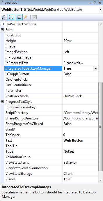 WebButton can be used in either StandAlone mode or Integrated mode. To enable the Integration mode, simply change the IntegratedToDesktopManager property to True.