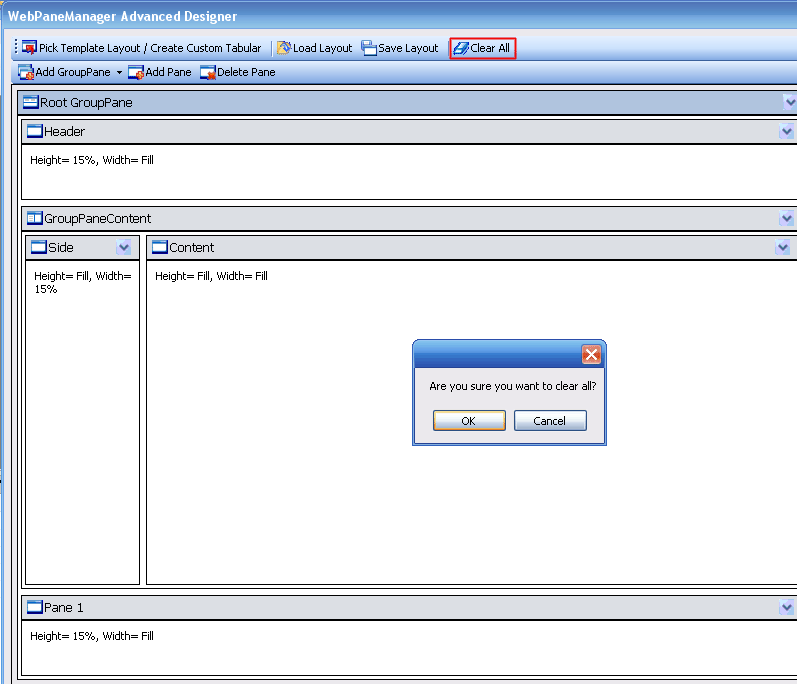 | Intersoft WebDesktop > WebPaneManager > Working with PaneManager Editor > Using ToolStrip Menu > Clear All |