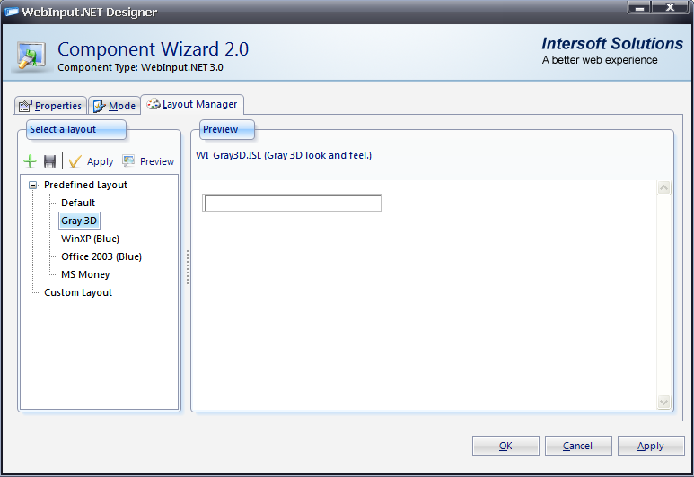 By default, WebInput.NET is equipped with 5 predefined layouts, such as 'Default', 'Gray 3D', 'WinXP (Blue)' etc.