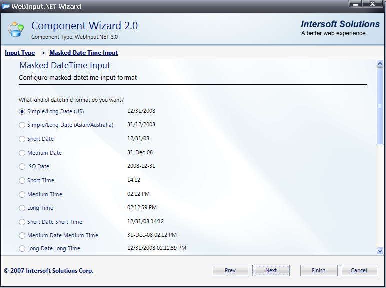 - You will go to the next section which is called Masked Date Time Input. In this section, you will be able to set any DateTime format available, e.g. Set to Simple/Long Date (US). Click Next to go to next section.
