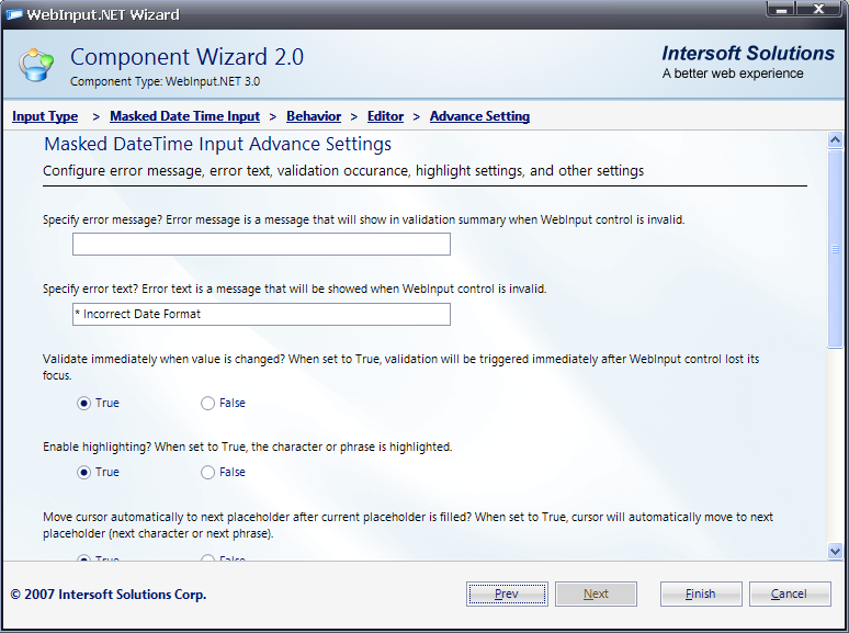 This walkthrough shows you how to create masked DateTime data entry in WebInput.
