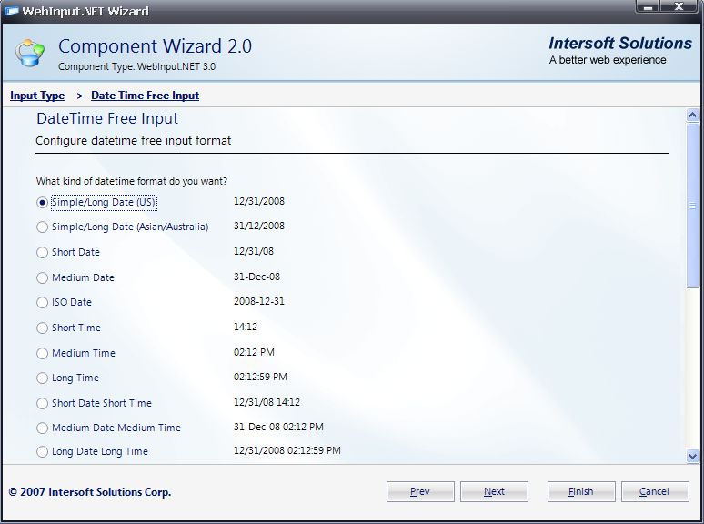 - You will go to the next section which is called Date Time Free Input. In this section, you will be able to set any DateTime format available, e.g. Set to Simple/Long Date (US). Click Next to go to next section.
