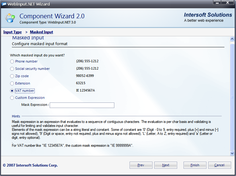 In WebInput.NET V3.0, you can perform masking data using VAT number format.