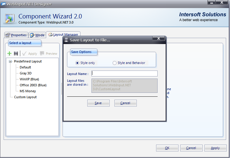 Developers can save the current layout of WebInput into *.isl file. Therefore, it could be retrieved easily in the future.