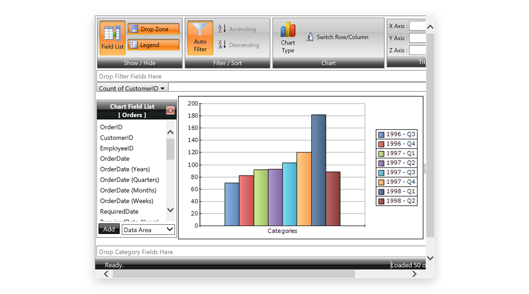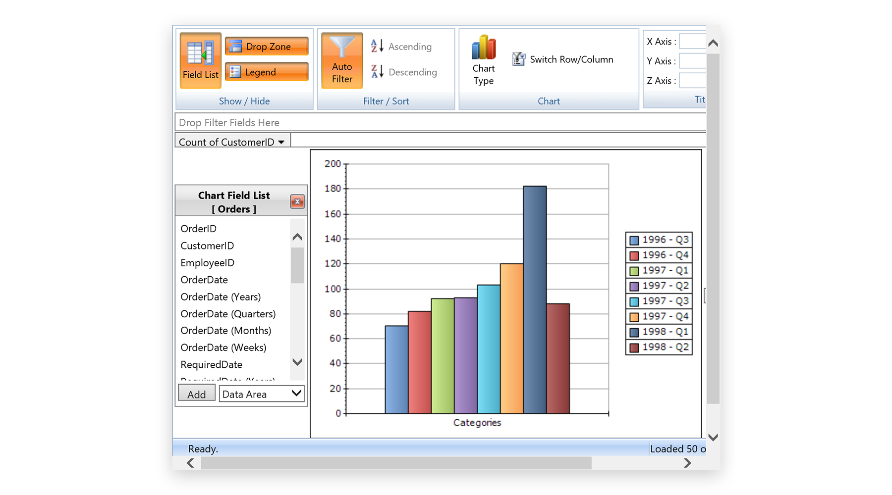 Each visual theme is designed with high quality graphics and balanced color scheme. In addition to the main WebGrid interface, the theme also covers all aspects of WebGrid user interface elements, including context menu, pivot charting interface, ribbon, buttons, status bar and more
