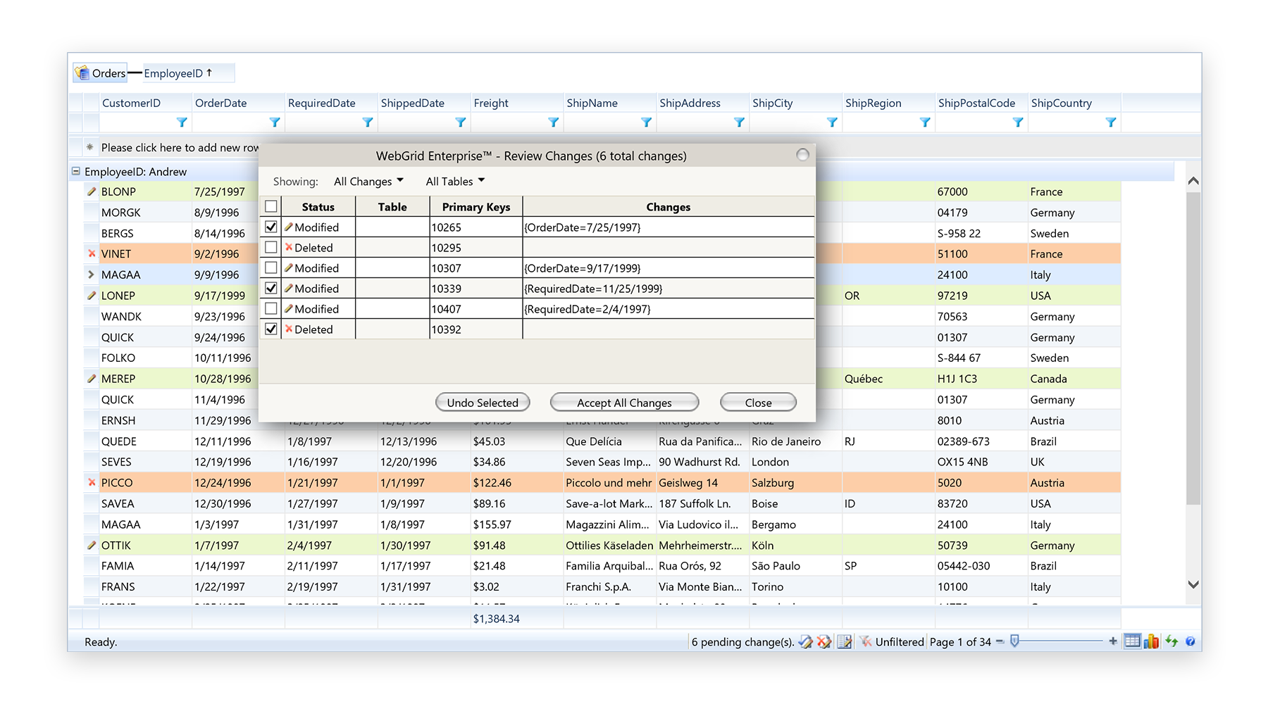 This release features more extensibility and greater control over WebGrid’s functions and behaviors with more client-side events. For example: the OnExportContextMenu client-side event lets you invoked when the export contextual menu displays. The OnBatchUpdateError is invoked when one or more records fail to update during a batch update. This allows you to implement custom processing on the failed records.