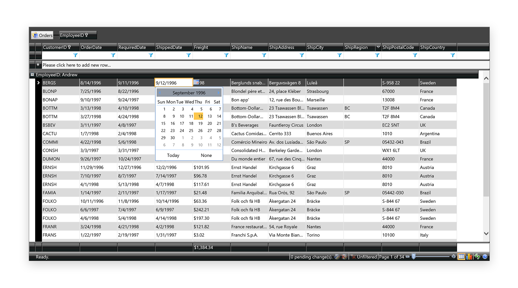 Thanks to WebGrid's DefaultStyle architecture, applying the new theme can be done as easy as one property set. The new themes are available as new options in DefaultStyleMode property in the new WebGrid control, accessible via the enhanced Component Designer 2.