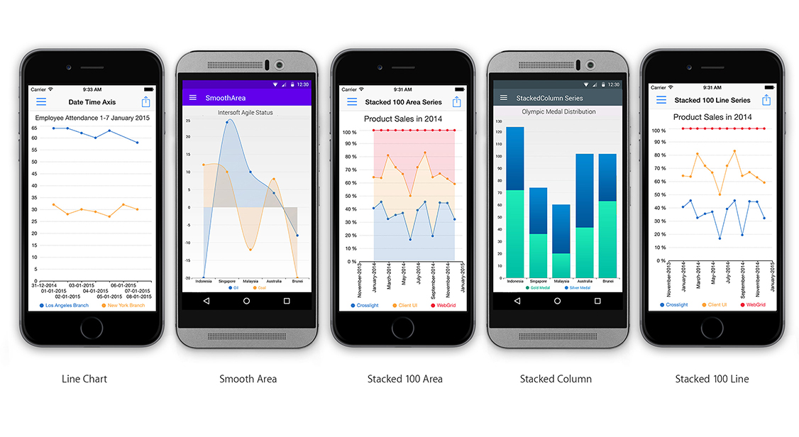 Crosslight Charting doesn't just look beautiful, it's also smartly designed so everything just works with very minimal configuration. It automatically determine the best axes, label positioning, interval range just by binding your data to it. Crosslight Charting has the best of both worlds: gorgeous looks and a powerful brain.