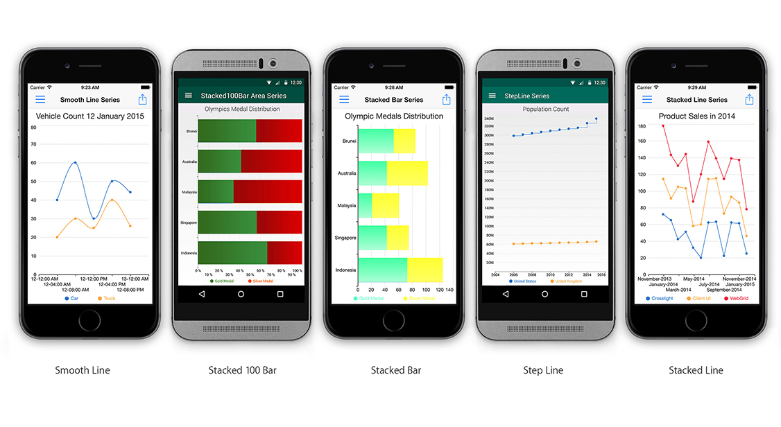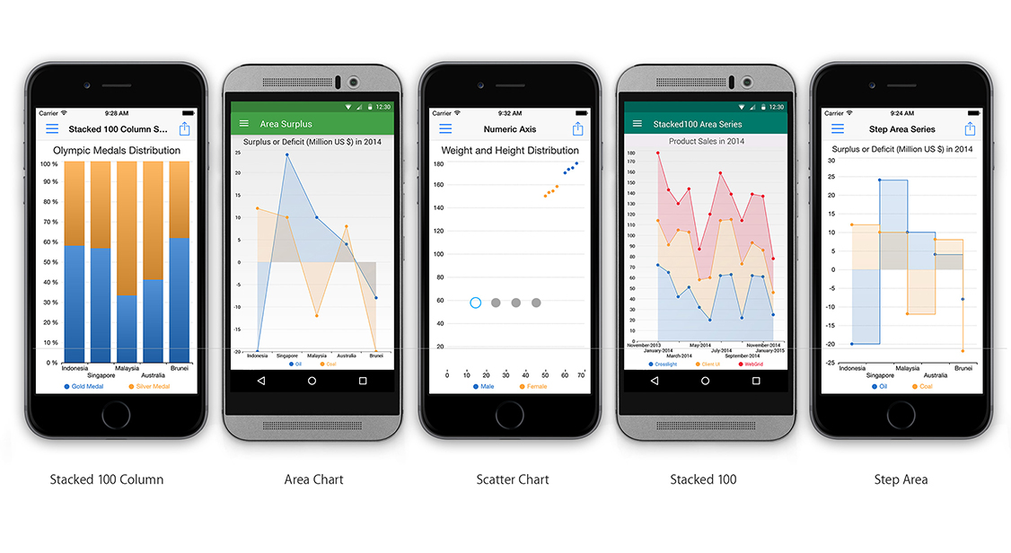 Every chart element is customizable – from the font, title, legend, position, color palette, fill style, data point style, axis style, and a lot more. In addition, you can also customize every little detail of the chart experience such as the animation duration. This allows you to obtain full control over its appearance and easily integrate Crosslight Charting to match your app branding.