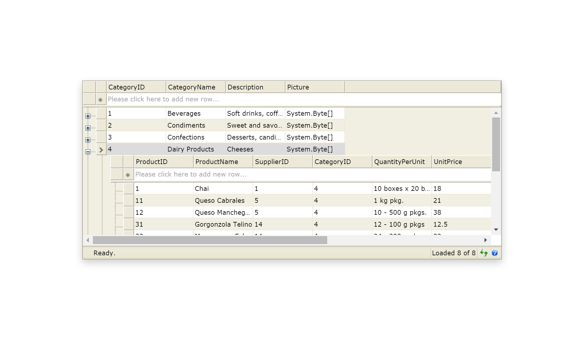 In addition to powering Intersoft’s hierarchical data retrieval, support for multiple tables in ISDataSource translates into easier organization and less work. By binding tables in one ISDataSource instance, you can change settings either for a single table, or all tables, greatly reducing both coding and debugging time.