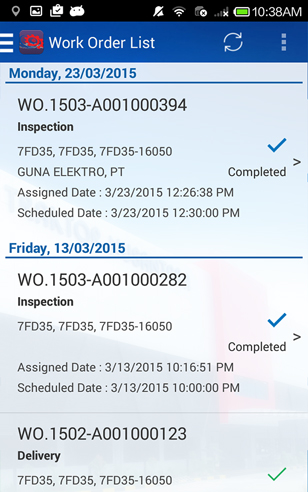 In customer information of the work order detail, mechanics can easily contact one of the contact persons at the office or on site only with a single tap. Under the hood, Crosslight's mobile service leverage the native telephony feature of the device and allowed the call to take place.