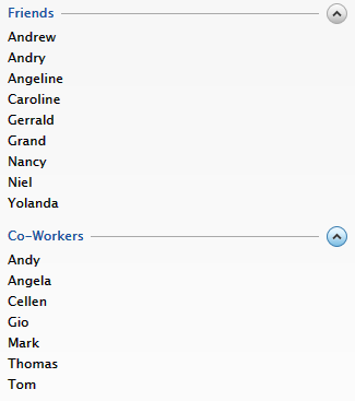 <Intersoft:UXItemsControl ItemsSource="{Binding Items}" DisplayMemberPath="Name"> <Intersoft:UXItemsControl.GroupStyle> <Intersoft:GroupStyle> <Intersoft:GroupStyle.HeaderTemplate> <DataTemplate> <Intersoft:StylishLabel Background="{x:Null}" BorderBrush="{x:Null}" ContentType="ContentAndImage" Width="150" ImageWidth="32" ImageMargin="0" HorizontalContentAlignment="Left" ImageSource="/ClientUI.2012R1.Preview;component/Assets/Images/People.png" Content="{Binding}"/> </DataTemplate> </Intersoft:GroupStyle.HeaderTemplate> </Intersoft:GroupStyle> </Intersoft:UXItemsControl.GroupStyle> </Intersoft:UXItemsControl> |