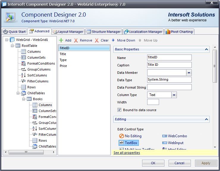 - Go to Advanced tab - RootTable, set DataMember and Caption to Authors.