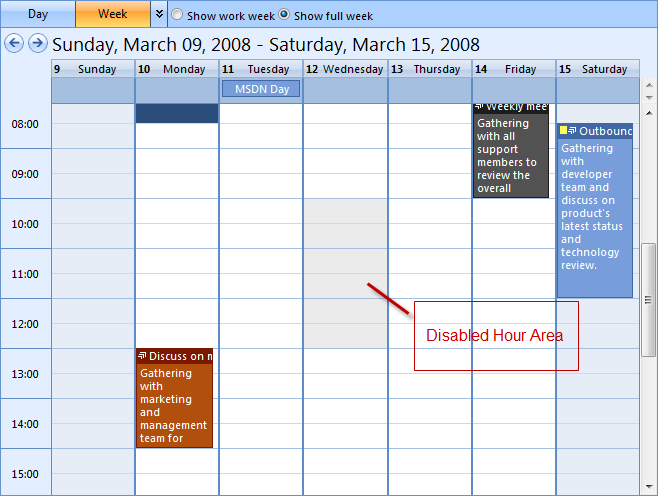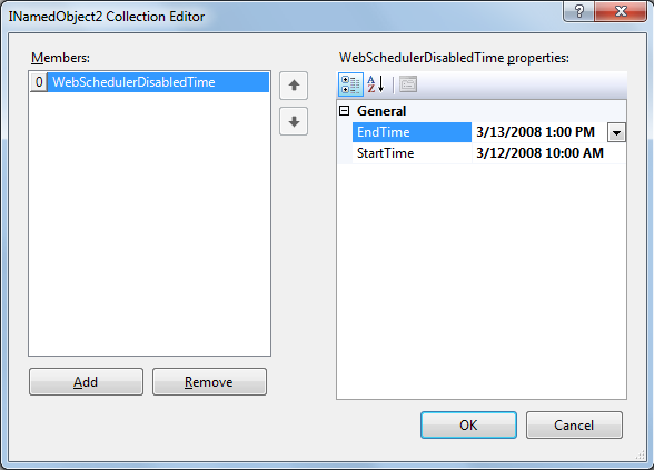 In this sample, StartTime is set to “3/12/2008 10:00 AM” and EndTime is set to “3/12/2008