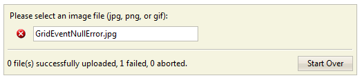 - Run the sample in the Web Browser, trying to upload a file larger than 50KB will result in a failure.