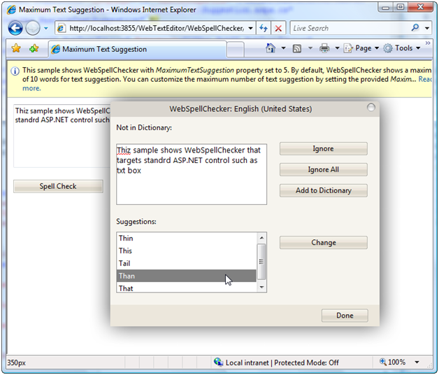 - Create a function called AddSpellChecker() and use CheckSpell() method to implement spell checker.