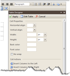 WebTextEditor provides more convenience way to edit table cell's properties through table designer's task pane. It allows you to customize the following cell settings: