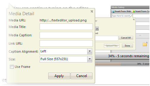 Every time an image is added to WebTextEditor, an editing image callout will appear near to the added image. User can perform image editing through this callout.