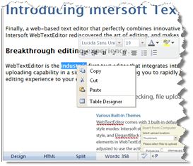 To edit and format the content, user can use toolbar, shortcut keys, and context menu. Context menu in WebTextEditor is not enabled by default. To enable context menu, simply set EnableContextMenu property to True.