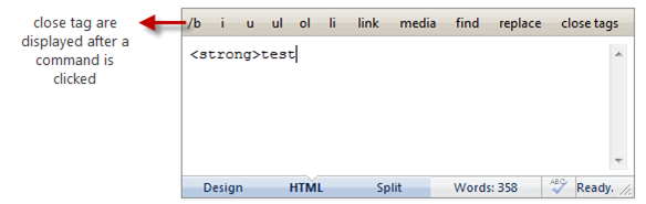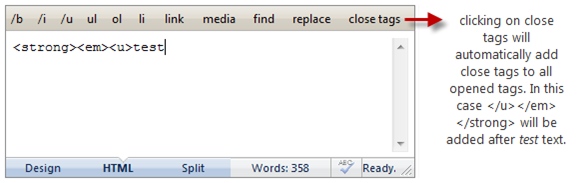 User can easily add some tags and click close tags command to add close tags for all previous opened tags.