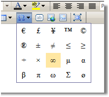 There are 20 predefined symbols in WebTextEditor, user can insert the symbol to editor with Symbol pop up. Simply click on the "Insert Symbol" command on the toolbar, and choose the symbol to be inserted from the symbol popup.