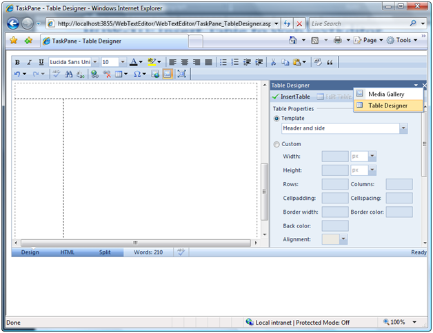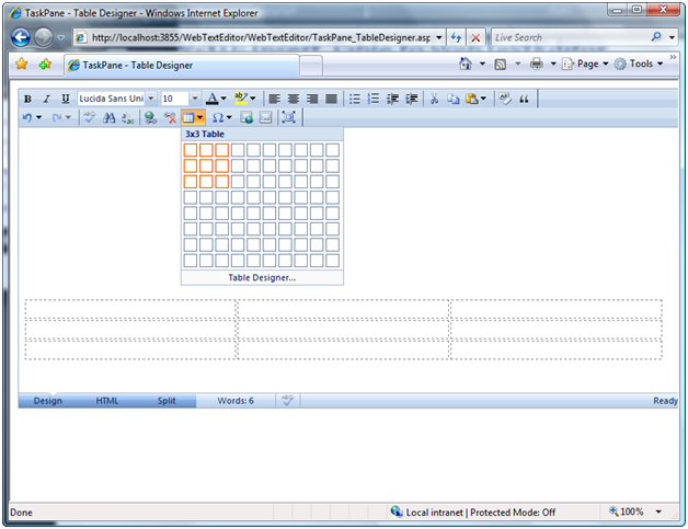 To insert table to WebTextEditor