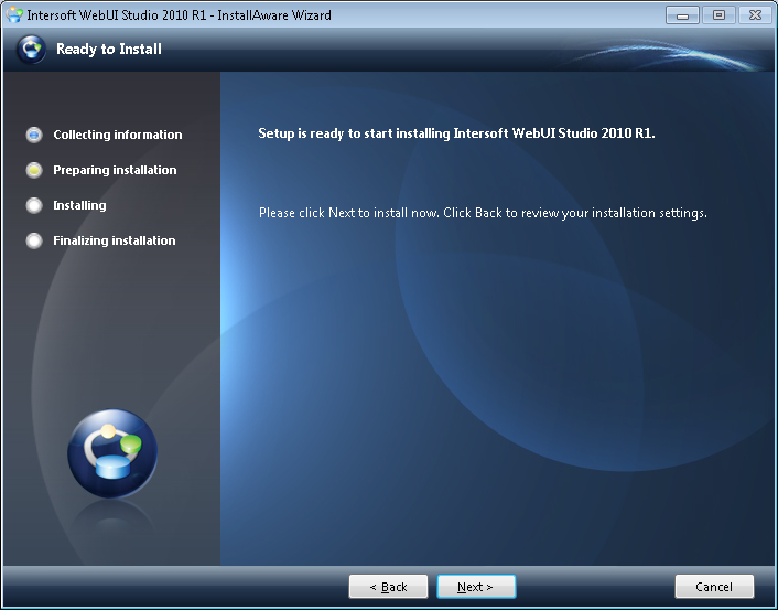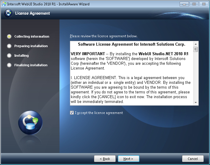- Double click on the "intersoft webui studio 2010 r1.exe" icon to start the installation process. Read the instructions, and click next.