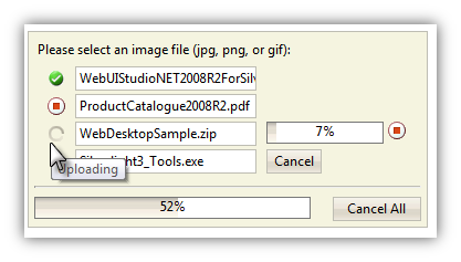 WebFileUploader introduces revolutionary experiences which enables you to select multiple files in a single instance and shows uploading progress in real time - making file uploading more intuitive, simpler and faster than ever. Furthermore, it also allows you to abort currently uploaded file, or cancel the pending uploads.