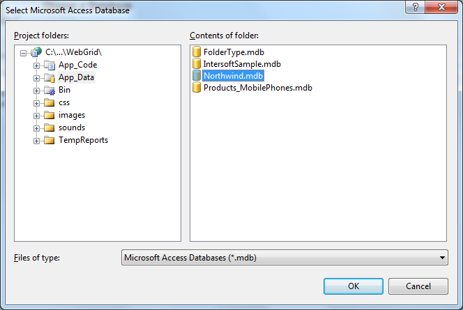 This walkthrough shows you how to create and bind WebGrid to an AccessDataSource