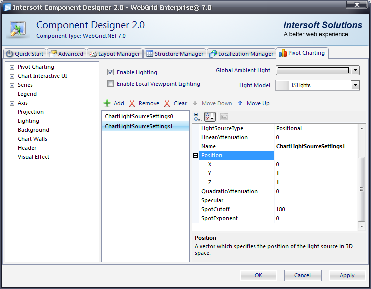 This walkthrough shows you how to apply lighting effect to 3D chart types.