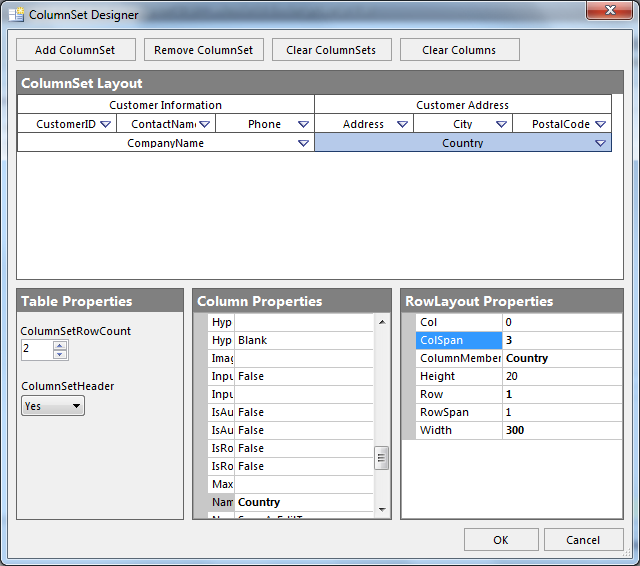 - Click "Add ColumnSet" twice (add 2 ColumnSets).