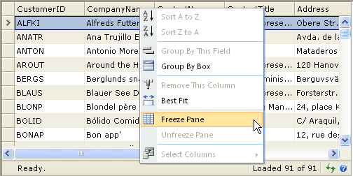 The result is CustomerID and CompanyName columns will become freeze columns.