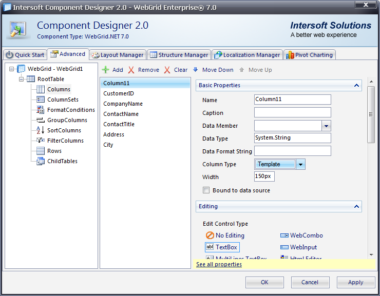 This walkthrough shows you how to configuring a WebGridColumn to use Templated