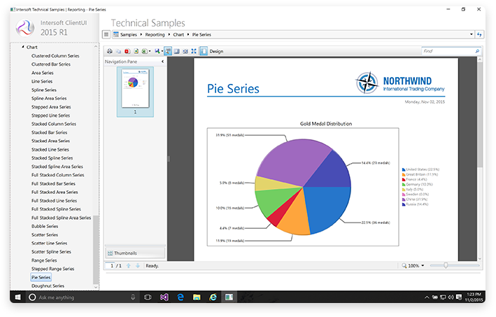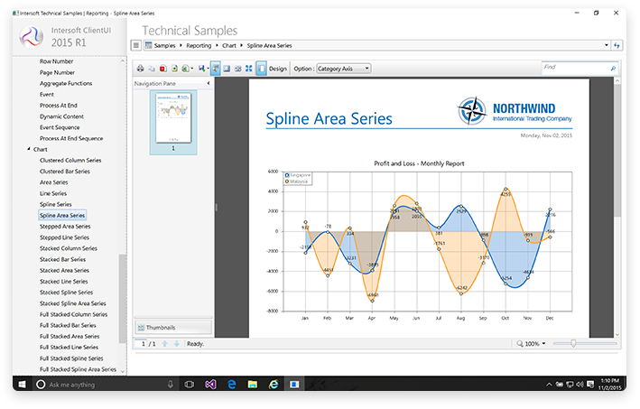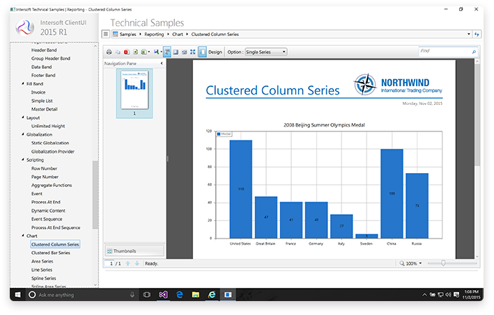 Unlike traditional report designers, ClientUI Report Designer features clutter-less surface that allows you to work with the report elements as if they were in an actual page. Featuring true WYSIWYG experience, you can easily author gorgeous business reports through the guided task workflow in the ribbon. You can easily add a data band or report section from the ribbon gallery, set common properties in smart tag, copy and paste objects through context menu or keyboard shortcuts, and customize every aspect of the report component and layout – all from within the single report designer interface.